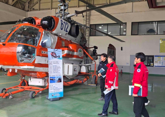이번 현장 점검은 건조한 날씨와 강풍 등으로 산불 발생 위험이 높아지는 봄철 산불조심기간을 맞이하여, 산불 대응의 핵심 수단인 진화헬기 운용체계와 관계기관 간 공조 상황을 사전에 점검하기 위해 추진됐다. 노홍석 행정부지사는 산불진화 헬기 계류장과 운항·정비 여건을 직접 둘러보며, 산불 발생 시 초기 대응과 공중 진화가 신속하고 원활하게 이뤄질 수 있도록 현장 준비 상황을 꼼꼼히 살폈다.