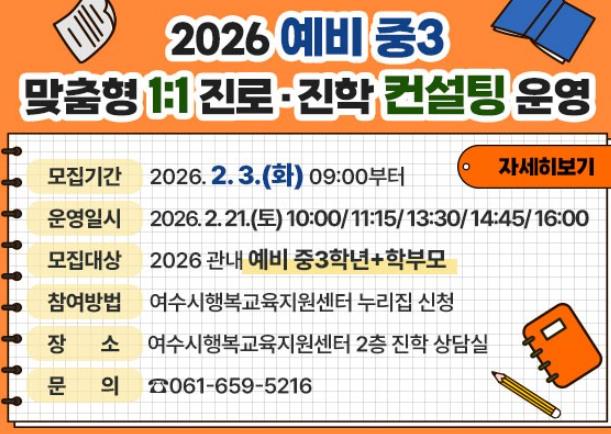 ![]() 홍보 포스터(2026 예비 중3 맞춤형 1:1 진로·진학 컨설팅) |