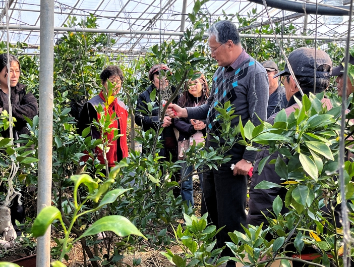 이번 교육은 만감류(레드향)와 감 재배 농가를 대상으로 농가 포장에서 직접 실습하는 방식으로 진행된다.