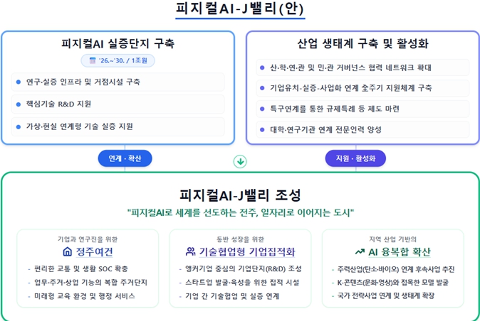 시는 AI 대전환 시대의 주도권을 선점하기 위해 밸리 조성 기획부터 핵심 인프라 구축까지 전담할 ‘피지컬AI-J밸리 추진단’을 신설하는 등 속도전에 나설 방침이다.