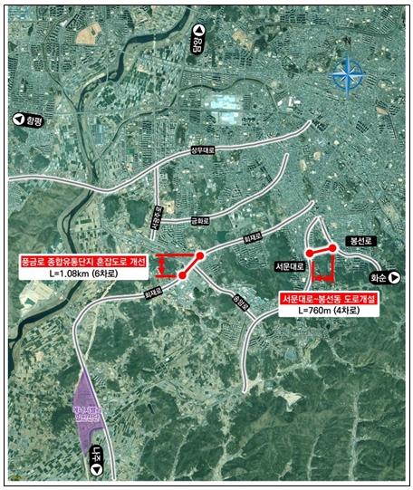 광주시는 향후 5년간 이번에 정부로부터 선정된 2개 도로사업에 대해 단계적으로 국비를 지원받는다.