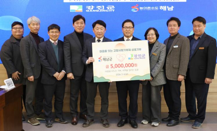 김준철 강진부군수는 “상호기부에 동참해 주신 강진군과 해남군청 직원 여러분께 감사드린다”며 “이번 상호기부가 고향사랑기부제에 대한 공감대 형성과 실천 확산에 의미 있는 계기가 되길 바란다”고 말했다.