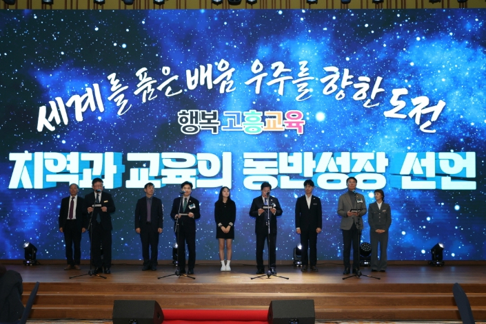 이날 비전 선포식에는 공영민 군수와 김대중 전라남도 교육감을 비롯해 도·군의원, 교육·공공기관장, 학부모, 학생, 지역 기관·단체장 등 지역 교육공동체 전반이 참석해 고흥교육의 비전과 방향을 함께 확인했다.