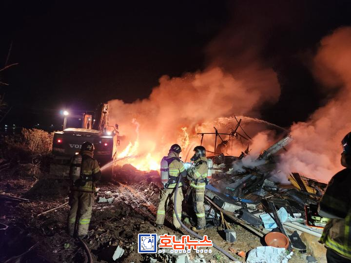 불이 난 건물은 조적조 스레트 구조(1층) 3동으로, 안채와 별채, 저온창고 부지 등 총 430㎡ 규모가 소실된 것으로 추정된다.