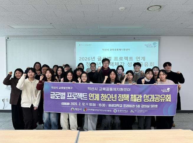 익산시는 12일 원광대학교 프라임관에서 '글로벌 프로젝트 연계 청소년 정책체감 성과공유회'를 개최했다.