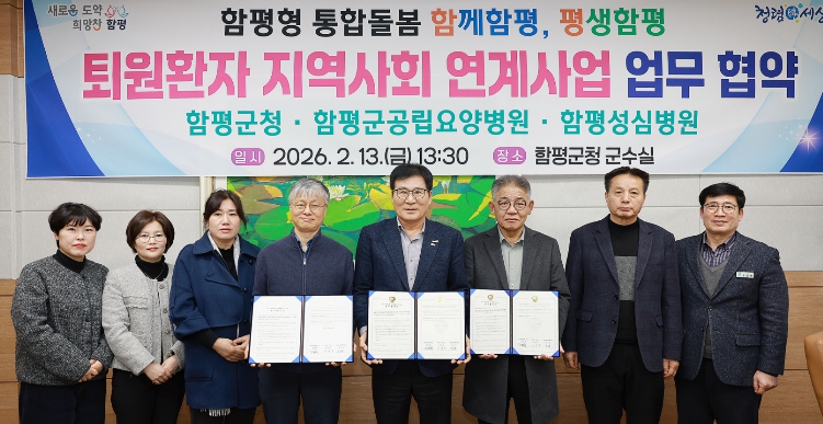 함평군은 13일 “퇴원환자의 원활한 지역사회 복귀를 지원하기 위해 함평군공립요양병원·함평성심병원과 ‘퇴원환자 지역사회 연계사업’ 업무협약을 체결했다”고 밝혔다.