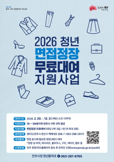 오태영 전주시 청년활력과장은 “취업 준비 과정에서 면접 정장 마련이 청년들에게 적지 않은 부담이 될 수 있다”면서 “청년들이 비용 걱정 없이 자신감을 갖고 면접에 임할 수 있도록 실질적인 지원을 이어가겠다”고 말했다.