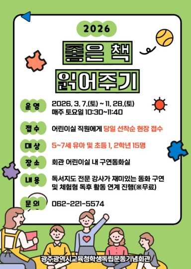 ![]() [포스터] “좋은 책 함께 읽으며 사고력 쑥쑥 키워요” - 2026년도 좋은 책 읽어주기 |