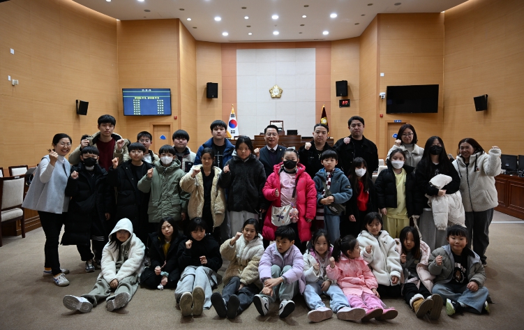 이날 아이들은 오후 2시 의회 청사에 도착해 청사 전반을 둘러본 뒤, 3층 본회의장에서 지방의회의 역할과 기능에 대한 설명을 듣고, 토론과 의사결정이 이뤄지는 공간을 직접 살펴보며 민주주의의 과정을 현장에서 체험하는 뜻깊은 시간을 가졌다.