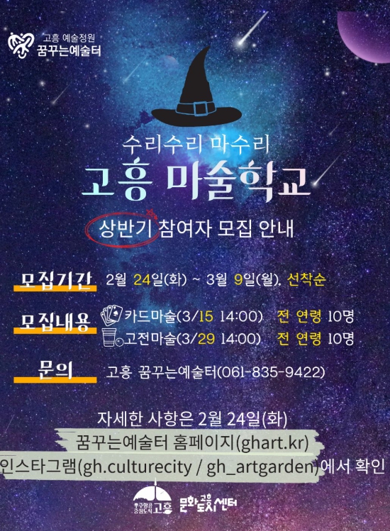 ![]() 융복합 문화예술교육 「고흥 마술학교」 참여자 모집 |