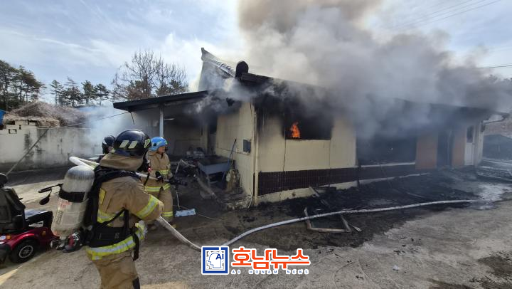 According to fire authorities, the blaze occurred at approximately 12:05 p.m. on February 23 at a residence located at 598-1 Jukseok-ri, Bonghwang-myeon, Naju. Upon receiving a report that “a house is on fire,” emergency dispatch orders were immediately issued, and firefighters, police officers, and Korea Electric Power Corporation (KEPCO) personnel responded jointly to the scene.