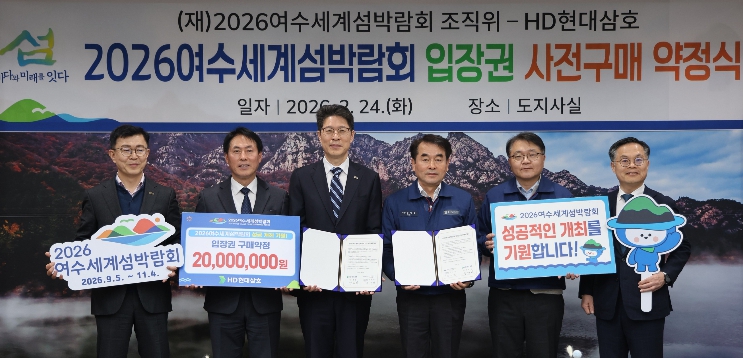 ![]() HD현대삼호, (재)2026여수세계섬박람회 입장권 사전구매 약정식 |