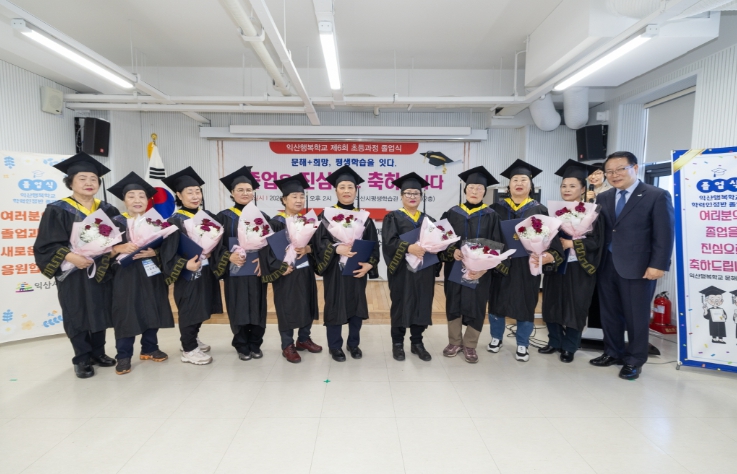 익산시는 25일 익산시평생학습관 세미나실에서 '익산행복학교 제6회 초등과정 졸업식'을 개최했다.