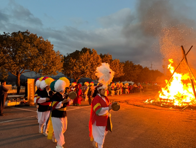 드론팀의 화려한 불꽃놀이가 밤하늘을 수놓은 가운데, 농악단의 흥겨운 가락과 면민들이 어우러져 달집 주위를 돌며 축제 분위기를 만끽했다.