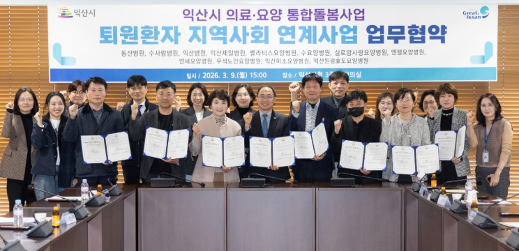 익산시 관계자는 "퇴원 후 돌봄이 필요한 어르신과 취약계층이 지역사회에서 안전하게 생활할 수 있도록 의료기관과의 협력을 더욱 강화하겠다"며 "앞으로도 의료와 돌봄을 연계한 시민 중심 통합돌봄 체계를 지속적으로 확대해 나가겠다"고 말했다.