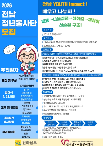 ![]() 전남 청년봉사단 모집 홍보 포스터. |