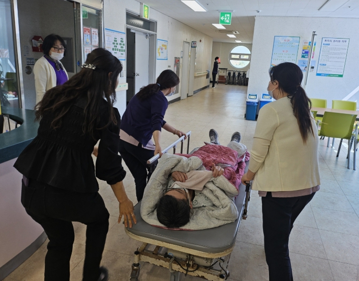 요양병원의 특성상 거동이 불편한 환자가 많은 점을 고려해 ▲환자 이동과 대피 요령 ▲대피 경로 확보 ▲구급 및 응급 대응 ▲유관기관 간 상황 전파 체계 등을 중점적으로 점검했다.