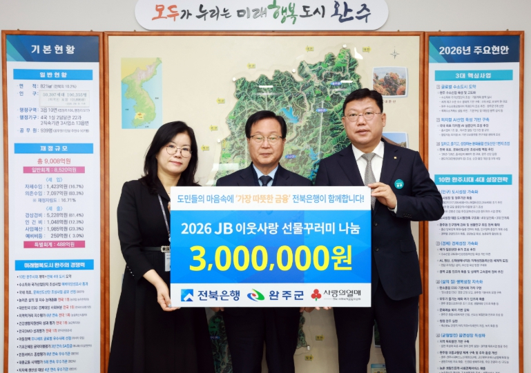 한편, 전북은행은 매년 완주군에 선물꾸러미와 방한 키트, 보건 위생용품 등을 꾸준히 후원하며 지역사회 복지 증진을 위한 든든한 후원자 역할을 수행하고 있다.