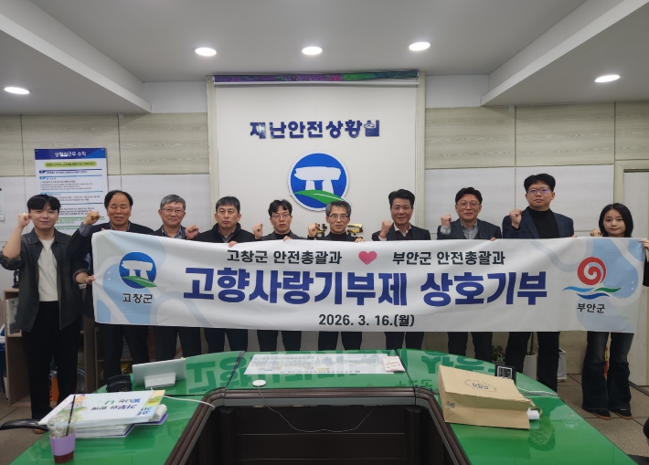 고창군 안전총괄과 소속 공무원과 부안군 안전총괄과 소속 공무원 각 18명씩 고향사랑 상호기부로 서로의 지자체에 180만원씩을 기부하며 지역 상생 발전을 응원했다.