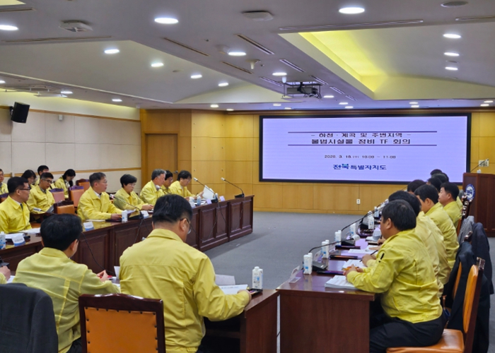 도는 18일 도청 중회의실에서 노홍석 행정부지사 주재로 ‘하천·계곡 및 주변 지역 불법시설 정비 TF 회의’를 열었다. 이날 회의에는 14개 시군 담당 국장과 도 관계 부서장 등 20여 명이 참석해 시군별 불법시설 현황과 정비 추진 방향을 집중 점검했다.