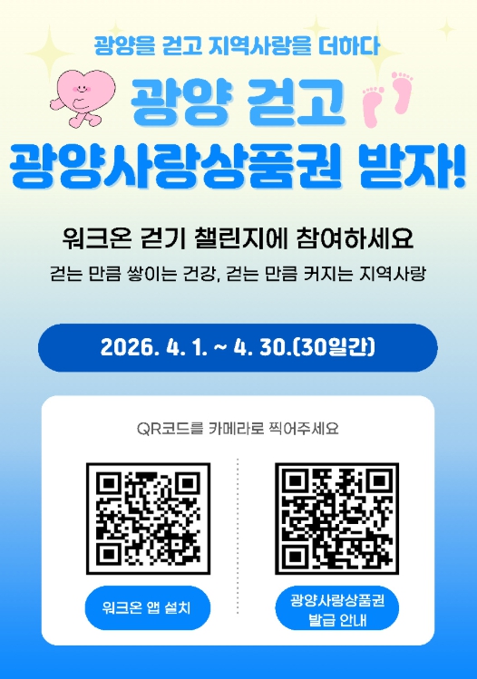 ![]() 워크온 보상 ‘광양사랑상품권’으로 바꾼다 |
