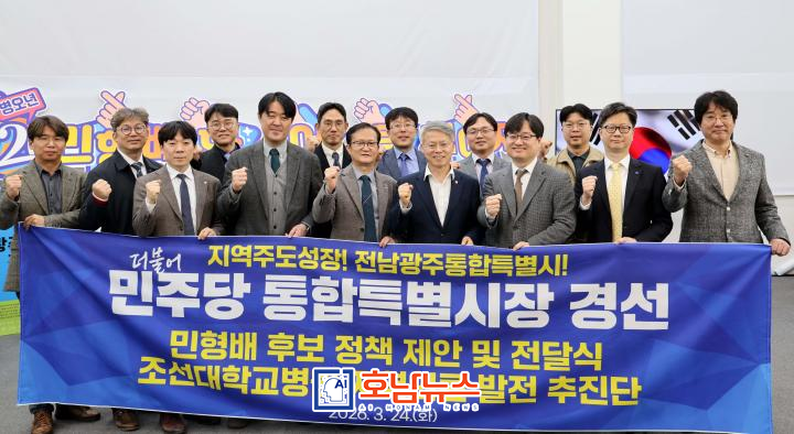 The Minshim Camp of Min Hyung-bae, a preliminary candidate of the Democratic Party for mayor of the Jeonnam–Gwangju Integrated Special City (Gwangsan-eul, Gwangju), announced on the 27th that “the Regional Healthcare Development Task Force of Chosun University Hospital visited the campaign office on the 24th to deliver policy proposals and formally pledge cooperation.”