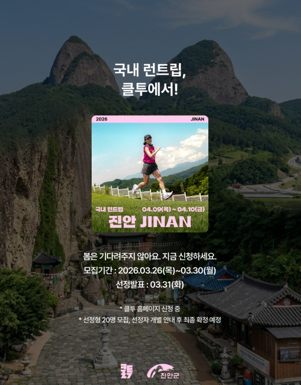 진안군 관계자는 “이번 런트립은 ‘2026-2027 진안 방문의 해’를 맞아 진안의 훌륭한 생태자원과 웰니스 관광의 매력을 널리 알리기 위해 특별히 추진될 예정”이라며, “아름다운 마이산과 벚꽃길을 달리며 진정한 힐링과 재충전의 시간을 가져보시길 바란다”고 전했다.