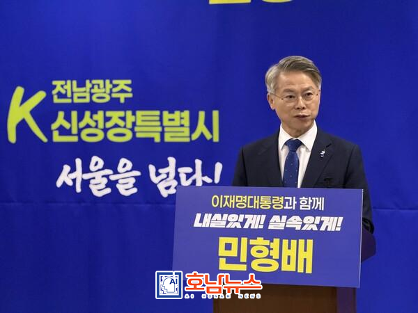 Min Hyung-bae, a candidate in the Democratic Party primary for mayor of the proposed Gwangju–Jeonnam Integrated Special City and a National Assembly member (Gwangsan-gu, Gwangju), announced a comprehensive “Three-Pillar Responsibility Policy” covering childbirth, childcare, and daily life—signaling a paradigm shift in addressing South Korea’s low birthrate crisis.