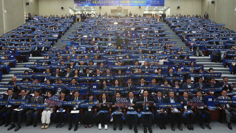 ![]() 2025년 9월 29일 ‘2025 나주교육 빅뱅 프로젝트’ 선포식에 참석한 시민과 관계자들이 단체 퍼포먼스를 선보이고 있다 |