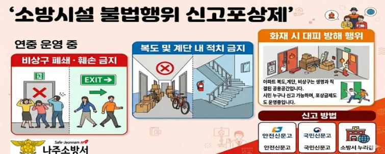 ![]() 나주소방서, 소방시설 불법행위 신고포상제 상시 운영 |