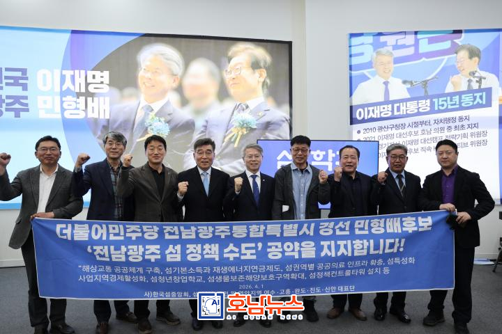 전남 지역 섬 주민과 해양 전문가들로 구성된 (사)한국섬중앙회와 여수·고흥·완도·진도·신안 등 전남 연안 5개 시‧군 대표단이 더불어민주당 전남·광주 통합특별시장 경선 후보인 민형배 국회의원(광주 광산구을)에 대한 공식 지지를 선언했다.