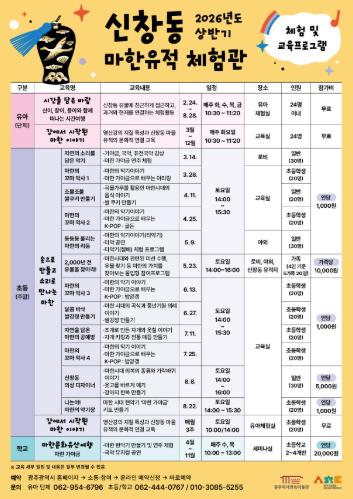 유아 대상 단체 프로그램으로는 ▲신창동 유물에 친근하게 접근할 수 있는 ‘시간을 담은 바람-신이·창이·동이와 함께 떠나는 시간여행’ ▲영산강 지질 특성을 신창동 마을 유적과 연결해 배울 수 있는 ‘강에서 시작된 마한 이야기’를 운영한다.