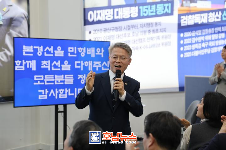 승리의 그날까지 흔들림 없이, 그러나 가장 낮은 자세로 뛰겠습니다. 더 큰 통합, 더 강한 전남·광주로 힘차게 나아가겠습니다.