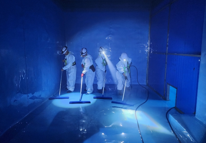 ![]() 정·배수지 청소 중 모습 |