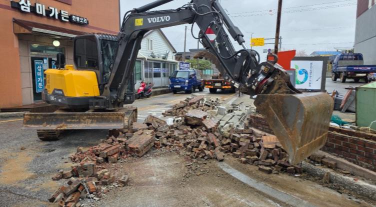 단원들은 붕괴된 담장 잔해를 신속히 정비하며 도로 주변 위험 요소를 제거하는 데 힘썼다.