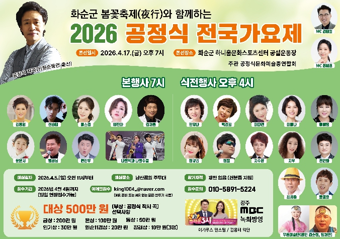 ![]() 2026 화순 공정식 전국 가요제, 4월 17일 개최 |