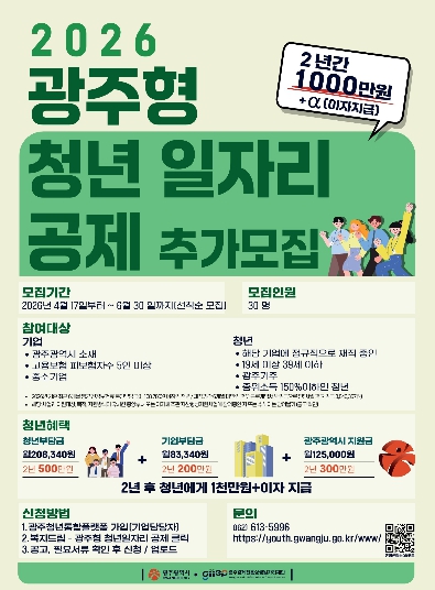 신청은 참여를 희망하는 기업이 청년 신청서 등을 포함해 ‘광주청년통합플랫폼(youth.gwangju.go.kr)’으로 접수하면 된다. 광주시는 소득·기업 요건 심사를 거쳐 대상자를 선정해 결과를 개별 통보할 예정이다.