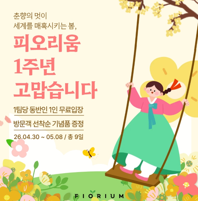 피오리움 관계자는 "지난 1년간 보내주신 성원 덕분에 뜻깊은 1주년을 맞이하게 됐다"며, "춘향제와 함께 피오리움을 방문해 남원의 봄을 더욱 풍성하게 즐기시길 바라며, 앞으로도 다채로운 콘텐츠를 선보이는 문화공간이 되겠다"고 밝혔다.