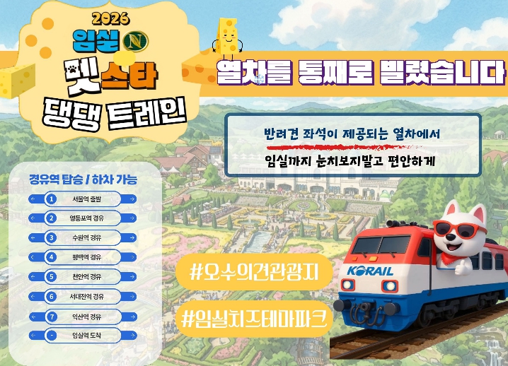 ![]() 반려견 전용열차‘임실N펫스타 댕댕트레인’운영 |