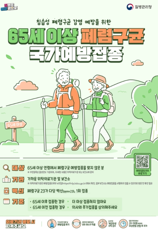 ![]() 65세 이상 어르신 폐렴구균 예방접종 연중 무료 실시 |