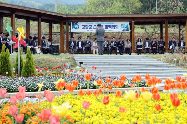김영식 고창군수 권한대행이 주재한 꽃정원 정책회의에는 실·관·과·소장 30명이 참석해 꽃정원 현장을 살피고, 앞으로 활성화 방안 등을 논의했다.