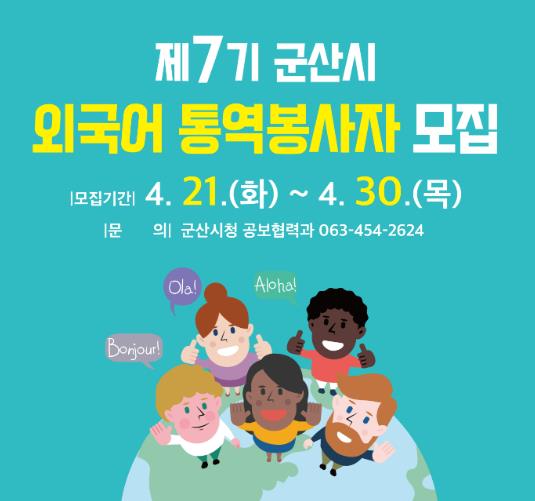 ![]() 군산시, 제7기 군산시 외국어 통역봉사자 모집 |