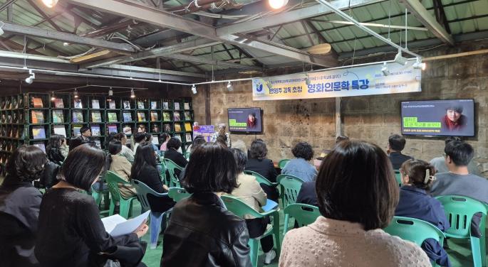 ![]() 21일 목포 남도책방에서 변영주 영화감독 초청 영화인문학 특강이 이뤄지고 있다. |