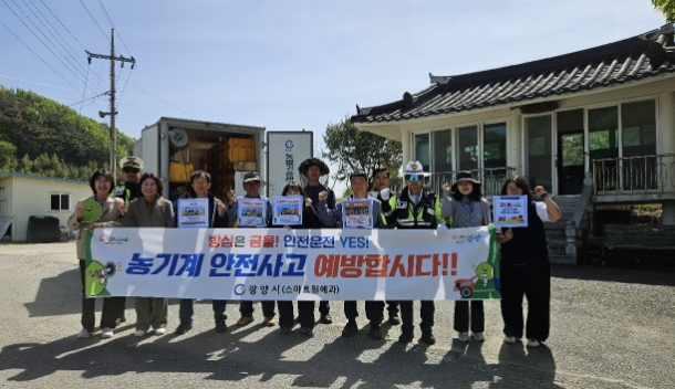 이번 캠페인은 영농철을 앞두고 농기계 사용이 늘어나는 시기에 맞춰 교통사고를 예방하고 안전의식을 높이기 위해 마련됐으며, 광양시 관계자와 경찰 등 20명이 참여했다.