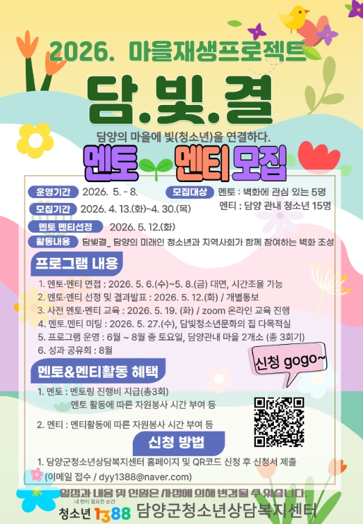 자세한 사항은 담양군청소년상담복지센터로 문의하면 된다.