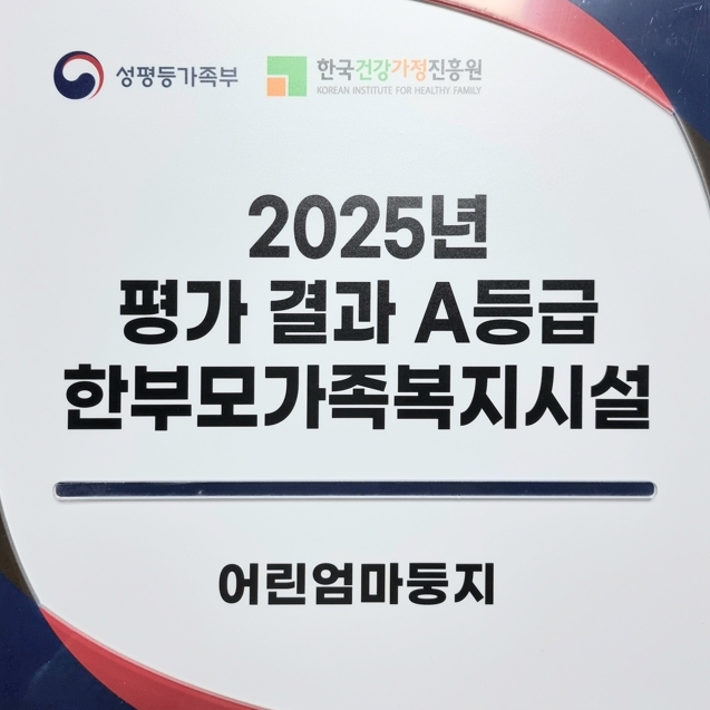 ![]() 2025년 사회복지시설평가 A등급을 획득한 ‘어린엄마둥지’ 인증패. |