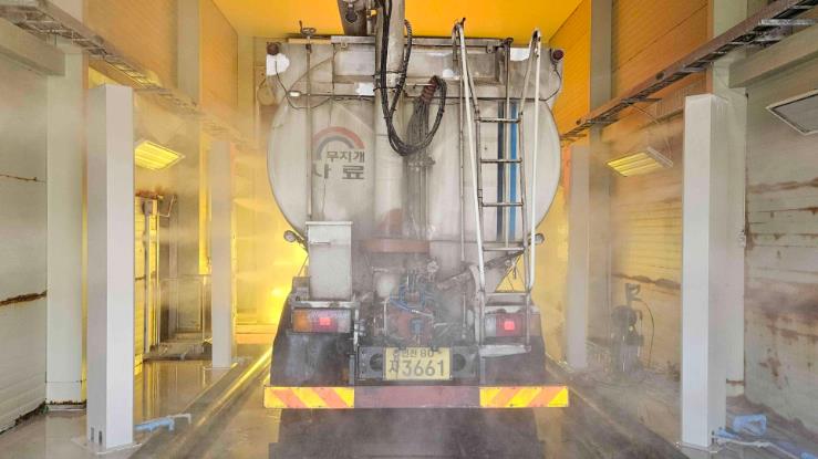 ![]() 축산차량 거점소독시설 소독 사진 |