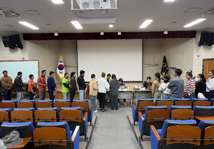 ![]() 화순군농업기술센터 대강당에서 진행된 외국인 계절근로자 지문등록 진행 모습 |