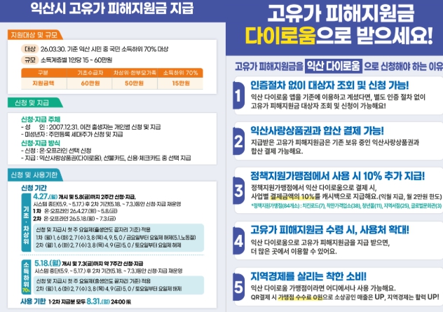 ![]() '고유가 피해지원금' 익산 다이로움으로 받으세요 |