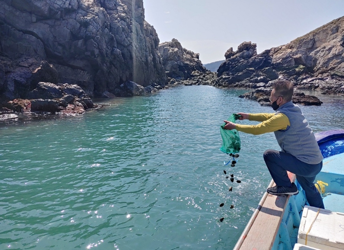 ![]() 2025년 양식장관리선을 이용하여 전복종자를 해상 방류했다. |